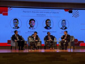 The Construction session, moderated by Tunku Musyrif, featured experts Shaun Tan (LAW Partnership), Kalai (Skrine), and Kevin Nathan (Nazmi Zaini). The discussion focused on disputes in construction projects, covering all scales from small renovations to mega infrastructure projects like the ECRL and Kota Madani (valued at RM4 billion). The session was divided into two parts: identifying disputes across project stages (pre-commencement, execution, and post-commencement) and exploring dispute resolution methods, particularly adjudication under the Construction Industry Payment and Adjudication Act 2012 (CIPAA), arbitration, and civil litigation.